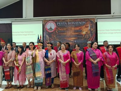 Sebelum seremoni pelantikan Lagu Indonesia Raya berkumandang, dipandu dengan khidmat oleh Ticia Samosir. Nada dan kata menyatukan hati yang hadir, mengingatkan bahwa kita anak bangsa, satu darah, satu tanah air. Usai lagu kebangsaan, panggung beralih pada laporan. Ketua Panitia Bonataon, Amang Bernandus Nadapdap, dipersilakan naik untuk menyampaikan laporan pelaksanaan kegiatan.