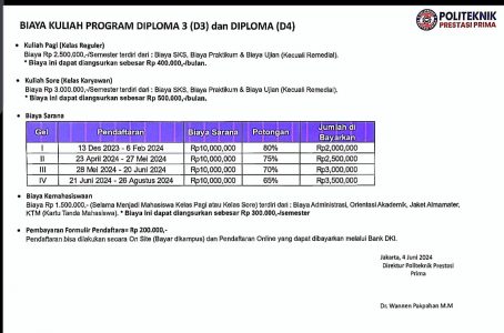 Keunggulan Kuliah di Politeknik Prestasi Prima Politeknik Prestasi Prima menjadi pilihan bagi calon mahasiswa yang ingin langsung terjun ke dunia kerja industri dan dunia usaha. Sistem pembelajaran dengan program dengan sangat baik untuk mempersiapkan lulusan yang siap kerja dengan etos kerja yang tinggi. Selama perkuliahan siswa dibekali dengan ilmu pengetahuan, keterampilan, sikap dengan metode yang menyenangkan.