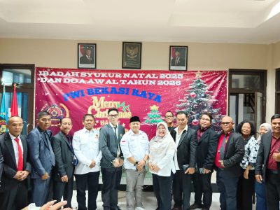 suatapian.com-Persatuan Wartawan Indonesia (PWI) Bekasi Raya menggelar Ibadah Ucapan Syukur Natal 2025 dan Awal Tahun Baru 2026 dengan khidmat di Sekretariat PWI Bekasi Raya, Rabu (14/1/2026). Acara ini mengusung tema “Allah Hadir untuk Menyelamatkan Keluarga” dan menjadi momentum refleksi sekaligus penguatan silaturahmi antarinsan pers.