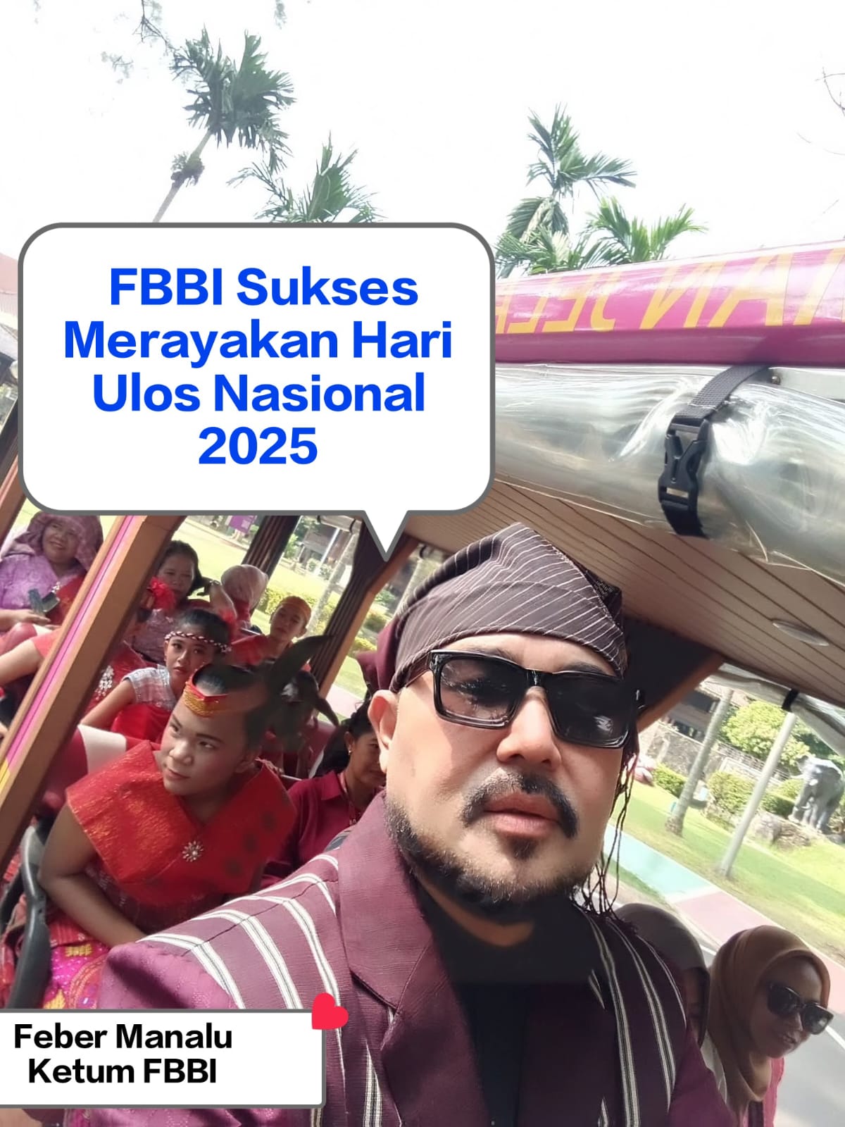 Pada Hari Ulos Nasional 19 Oktober 2025, semangat “Ulos Menyatukan Bangsa” benar-benar menghidupkan suasana di TMII. Feber Manalu, seorang seniman panggung yang juga dikenal sebagai penyanyi dan MC berbakat, menjadi dalang di balik tagline dan ide kreatif yang memukau ini.